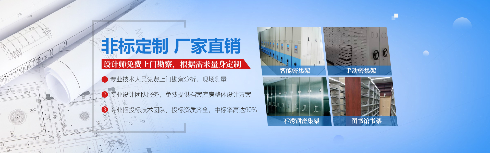 可根據(jù)客戶不同的需要設計、制作各種款式或特殊規(guī)格的密集架、書架、公寓床、安防設備等